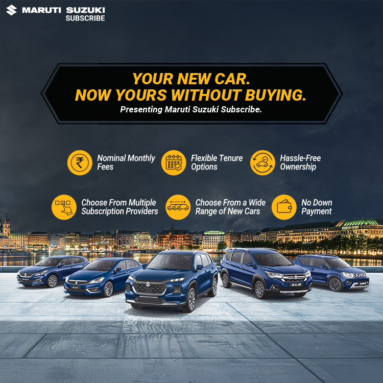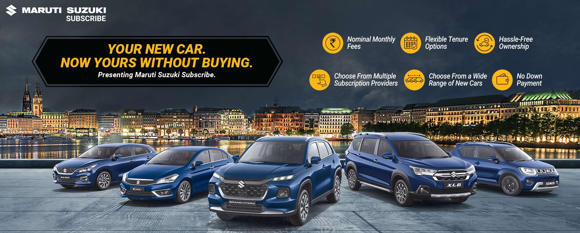 Maruti Suzuki Subscribe enables all customers to enjoy driving their preferred Maruti Suzuki cars without having to deal with all the financial responsibilities that come with owning a car.All you need to do is opt for a monthly subscription plan at a fixed monthly fee, which includes the routine maintenance and insurance costs, and choose a flexible tenure. At DD Motors in, West Punjabi Bagh, New Delhi, all Hatchback, Sedan, SUV, the MUV models line-up includes Baleno, Invicto, EVitara, Jimny, Ciaz, Ignis, Fronx, Grand Vitara, XL6. Here, you will enjoy Maruti Suzuki Subscribe benefits such as: